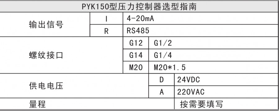 PYK150智能壓力控制器是集壓力測量、顯示、輸出、五路控制于一體的智能數(shù)字壓力測控產品。不銹鋼接頭、擴散硅壓力芯體、全數(shù)字電路板組成,顯示直觀,操作簡單,安全可靠,開關點現(xiàn)場設置。廣泛應用于水電、自來水,石油、化工、機械、液壓等行業(yè),對流體介質的壓力進行測量和控制,并可遠傳輸出(4-20mA)及RS485組網。